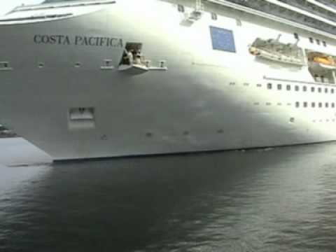 Noch mal die Costa Pacifica, wie sie am 10.07.2011 mit dem Getöse ihrer Querstarhler ablegt.